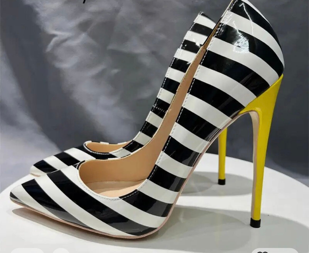 Madeline Monochrome Stripe Heels