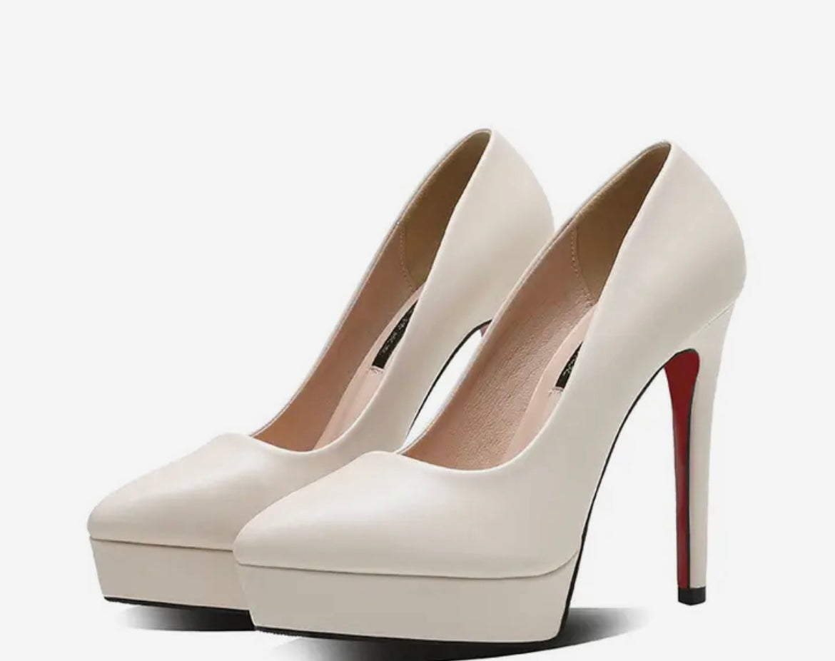Slip into these Mia Round Toe Pumps for your next special event and deliver an unforgettable look! Made from 100% leather, these classy pumps are designed in a pristine white hue. Set on top of a high stiletto heel, these white leather pumps include a peep-toe design and a cushioned insole for comfort. The slip on style ensures easy on and the red outsole adds a bold touch.