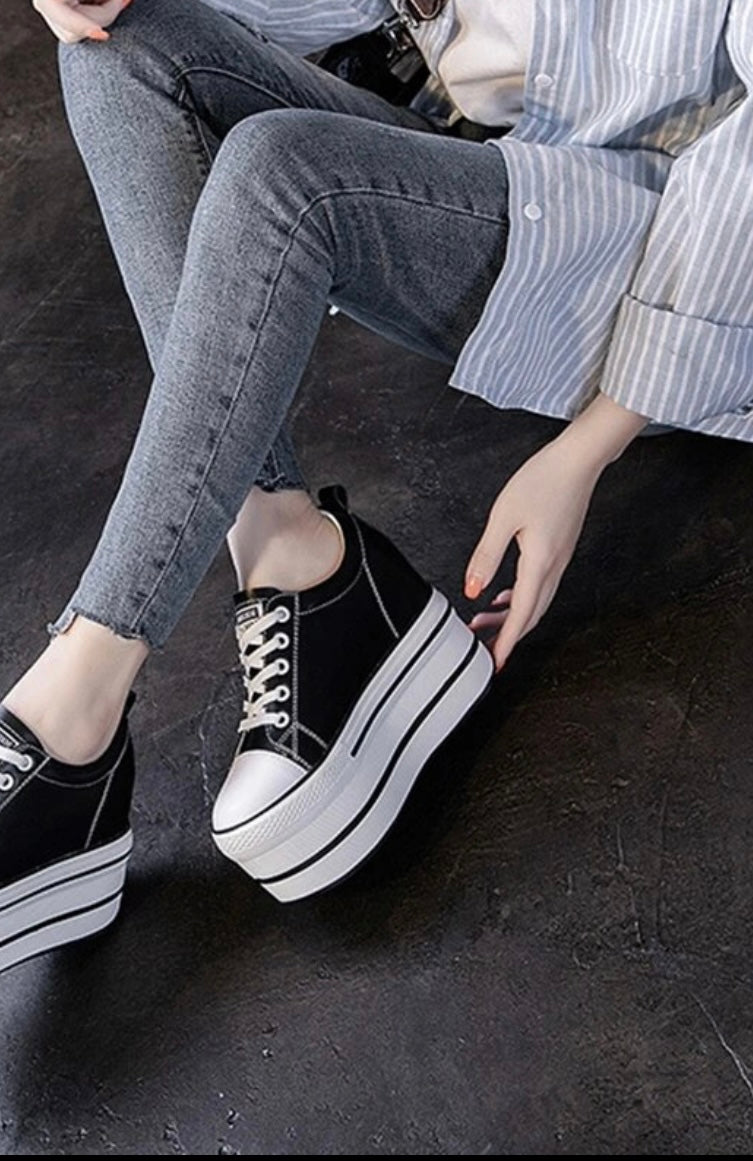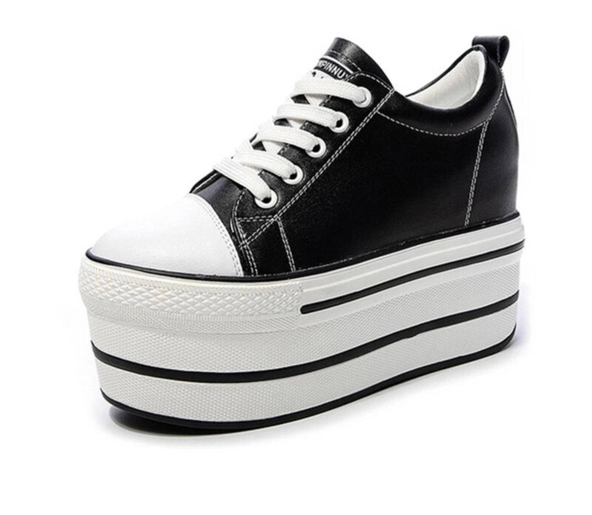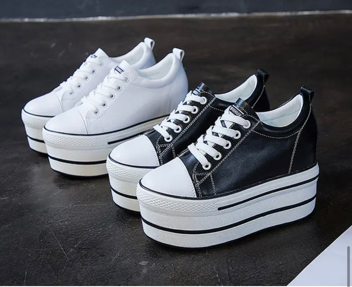 Elevate your height in these leather platform trainers. For an uplifting and casual look these genuine leather shoes will blend in with any outfit for that casual yet on trend look.
